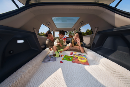 设计细节与配置丰富度,决定了家庭用车的舒适体验与场景适应性。外观设计上,东风纳米06采用“奇趣魔方”理念,同级独有的天地门设计堪称亮点,天门可遮阳挡雨,地门承重达150KG,后排座椅放倒后能衔接天地门,秒变2米观星榻,全家露营时可化身露天影院;主副驾座椅放倒后还能形成“大平层”,家长接送孩子等待时可午休,实用性远超传统SUV。比亚迪元UP采用家族式设计语言,贯穿式LED尾灯与悬浮车顶虽符合主流审美,但车身内部缺乏针对家庭场景的特色设计,场景拓展性较弱。