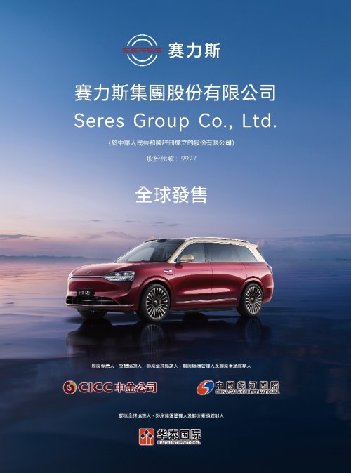 10月27日,赛力斯开启港股招股,招股期持续至10月31日,计划于11月5日正式以“9927”为股票代码在港交所主板挂牌,上市后将成为首家“A+H”两地上市的豪华新能源车企。
