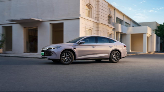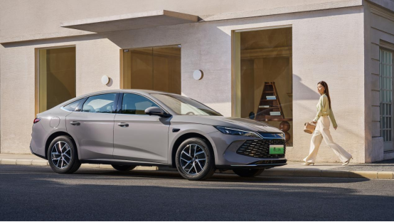 2026款秦L DM-i新增未央灰车色,清透灵动,随光而变,灰色基底上透着一抹天青釉,在一天的不同时刻,呈现出不一样的光影色泽。