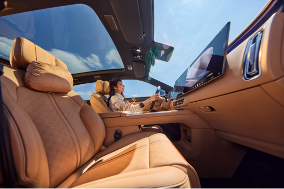 座舱之内,30吋6K寰宇一体屏以90%屏占比、1000nit亮度,将IMAX影院搬进车内。23扬声器伯牙之音7.5.4.2全景声系统,以2880W峰值功率和“真金白银”硬件方案,让每一次出行都成为视听盛宴。9.2L智能冷暖冰箱支持-18℃深冻至50℃保温,从冰淇淋到热牛奶,全场景覆盖。悠然座椅全车标配通风、加热与SPA级按摩功能——前排10点、后排8点按摩,让每一程都如沐春风。星河流光氛围灯以256色光影流转,24吋W-HUD让导航信息一目了然,视线从不离路。
