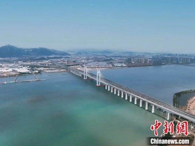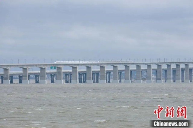 全长9.5公里的安海湾特大桥是世界首座无砟轨道跨海大跨斜拉桥,通车后,动车几分钟就可跨越大海。