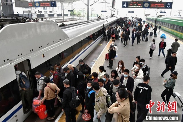 图为4月4日,福建福州,旅客在福州火车站准备乘坐动车出行。中新社记者 张斌 摄