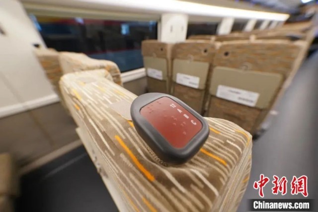 复兴号智能动车组座位上的盲文引导装置。肖尧 摄