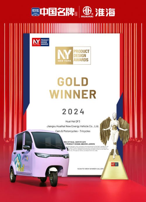 近日,备受瞩目的纽约产品设计奖(NY Product Design Awards)公布了2024年度获奖榜单。淮海QF3家用精品篷车凭借其卓越的设计理念与人性化的智能应用,一举斩获2024纽约产品设计奖金奖,成为继淮海休闲三轮车获得美国MUSE设计金奖后的又一国际金奖。