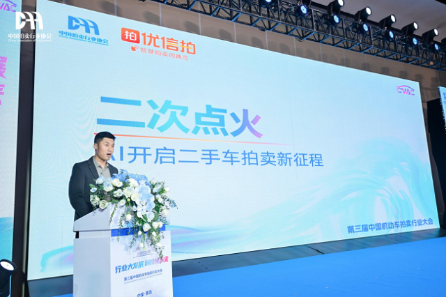 在大会主论坛上,优信拍运营负责人贺征发表了题为《二次点火,AI开启机动车拍卖新征程》的主题演讲。详尽阐述了技术引领机动车拍卖持续突破的重要意义。他表示,移动互联网技术在过去十年中,助力机动车拍卖破除了车源流通限制问题;未来十年,人工智能将接棒引领,以持续演进的AI技术为核心驱动力,助推机动车拍卖行业持续突破效率和信任瓶颈,进一步释放中国二手车产业活力,构建智能化、可信赖的二手车拍卖新格局。