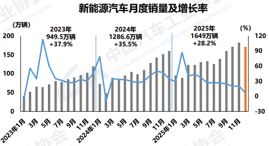 2025年9月,工信部等八部门联合发布《汽车行业稳增长工作方案(2025—2026年)》提出,2025年力争实现全年汽车销量3230万辆左右,同比增长约3%;其中新能源汽车销量1550万辆左右,同比增长约20%。如今,这一销量目标得以高质量完成。
