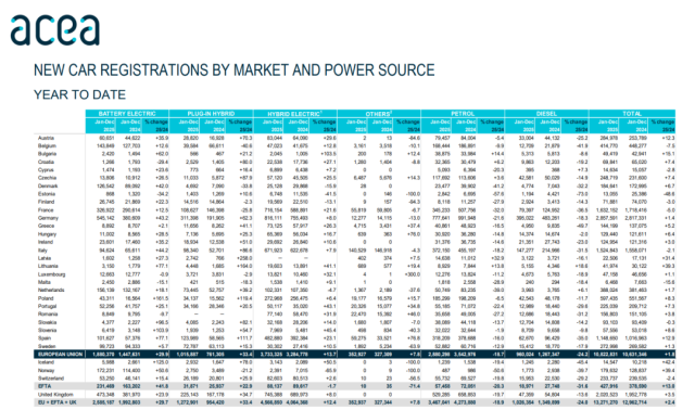 从ACEA近两年的统计数据来看,随着油电混合动力车、纯电动车、插电式混合动力车销量增长,汽油车和柴油车销量下滑,欧盟乘用车市场格局逐渐生变。